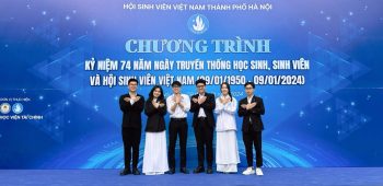 Lê Hiếu (đứng thứ nhất từ phải sang) trong một chương trình của Hội Sinh viên Việt Nam Thành phố Hà Nội