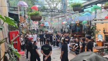 Nhóm sinh viên tham gia hoạt động training tại khách sạn Secret Garden Hostel, Cát Bà (tháng 11. 2024)