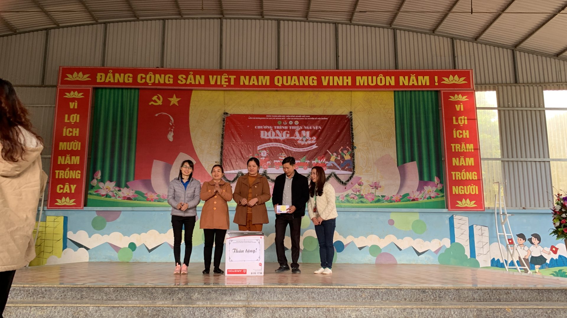 Hiểu được những vất vả gian nan của các em nhỏ đồng bào dân tộc vùng cao khi đi tìm con chữ, cùng với mong muốn lan tỏa sự yêu thương, giúp đỡ cộng đồng. Được sự đồng ý của Đoàn thanh niên Học viện Nông nghiệp Việt Nam, sự giúp đỡ của Chi đoàn Ban Dân tộc tỉnh Hòa Bình, Ban giám hiệu trường Tiểu học xã Tiền Phong, Đoàn thanh niên xã Tiền Phong, LCĐ Khoa DL&NN, Khoa TN&MT đã tổ chức gây quỹ chương trình thiện nguyện “Đông ấm 2022” và nhận được sự ủng hộ to lớn từ cán bộ, giảng viên, sinh viên của Học viện và các cá nhân, tổ chức, đơn vị trong và ngoài Học viện. Đến với điểm trường vào ngày 24-25/12/2022, LCĐ hai khoa đã có những phần quà nhiều ý nghĩa để tặng cho nhà trường và các bạn nhỏ nơi đây: 01 SmartTV dành cho phòng Thư viện trường, 02 suất quà cho học sinh khuyết tật, 08 suất quà cho học sinh nghèo vượt khó, 35 suất quà cho học sinh thuộc hộ nghèo có thành tích học tập Tốt, 50 suất quà cho học sinh thuộc hộ nghèo có thành tích học tập Khá, sách truyện cho hệ thống thư viện của trường, tổ chức chương trình “Merry Christmas” cho các bạn học sinh…