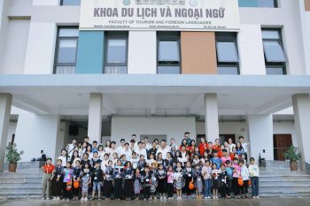 Sinh viên Khoa Du lịch và Ngoại ngữ giao lưu cùng với các bạn học sinh