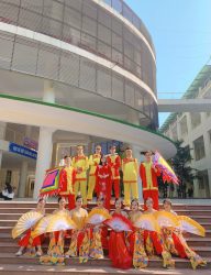 Trung Hiếu – đứng thứ nhất từ phải sang, hàng sau – trong một hoạt động văn nghệ